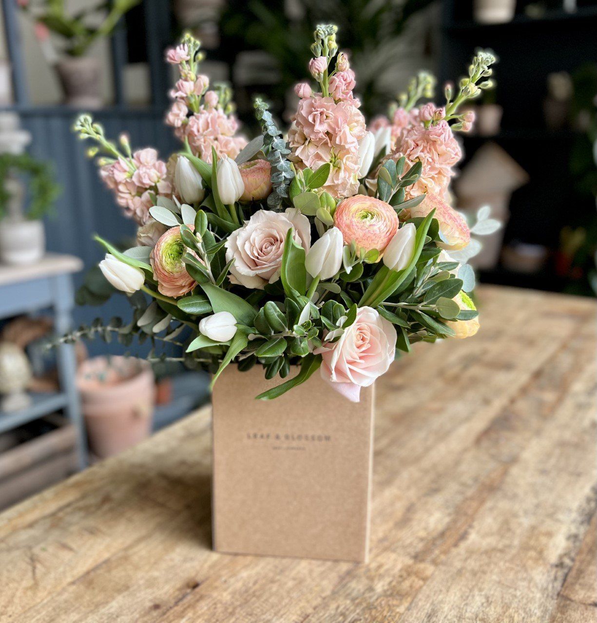 Welcome to Leaf & Blossom, an independent family owned florist. We specialise in beautiful, natural bouquets available for same day delivery in Cheltenham, stunning wedding flowers, beautiful sympathy arrangements and luxurious event flowers. We also stock a great range of houseplants.